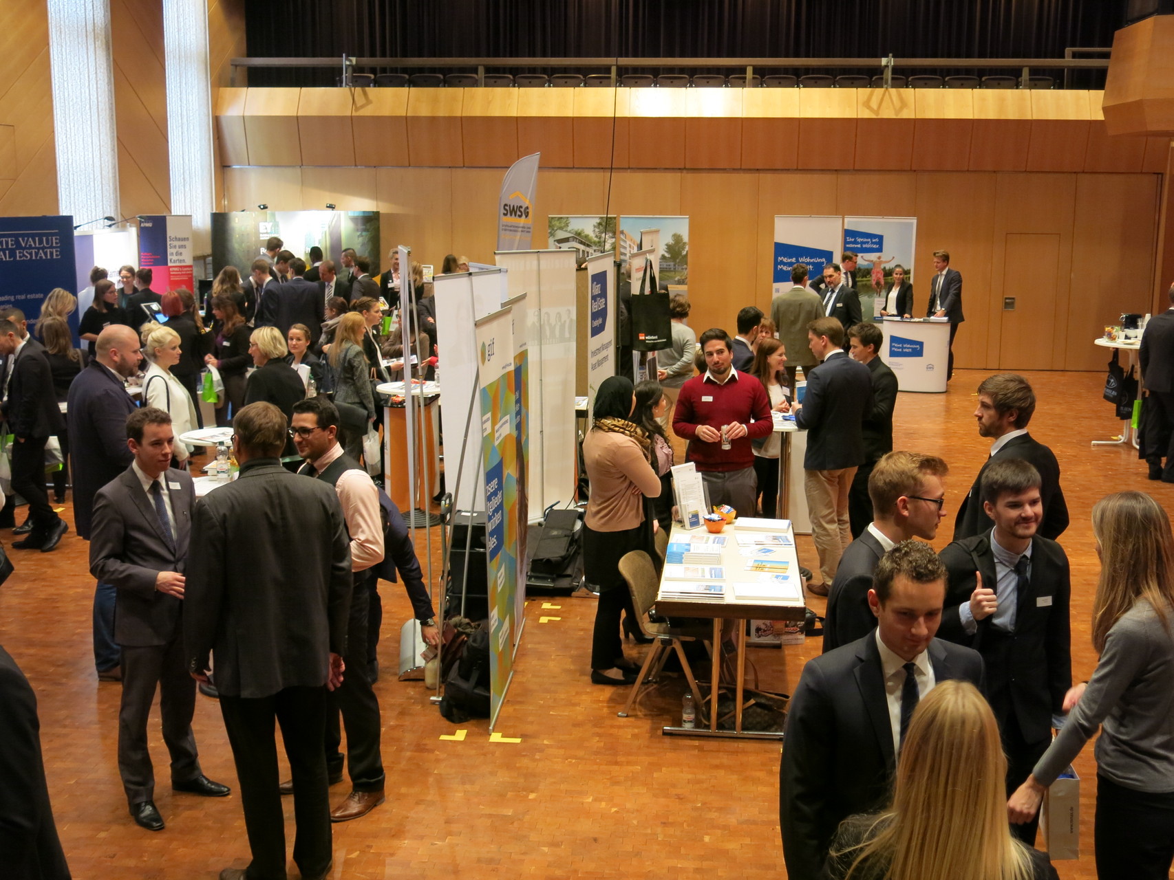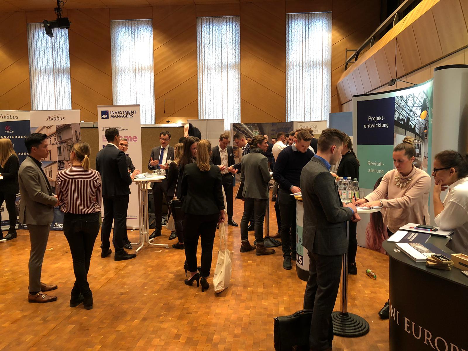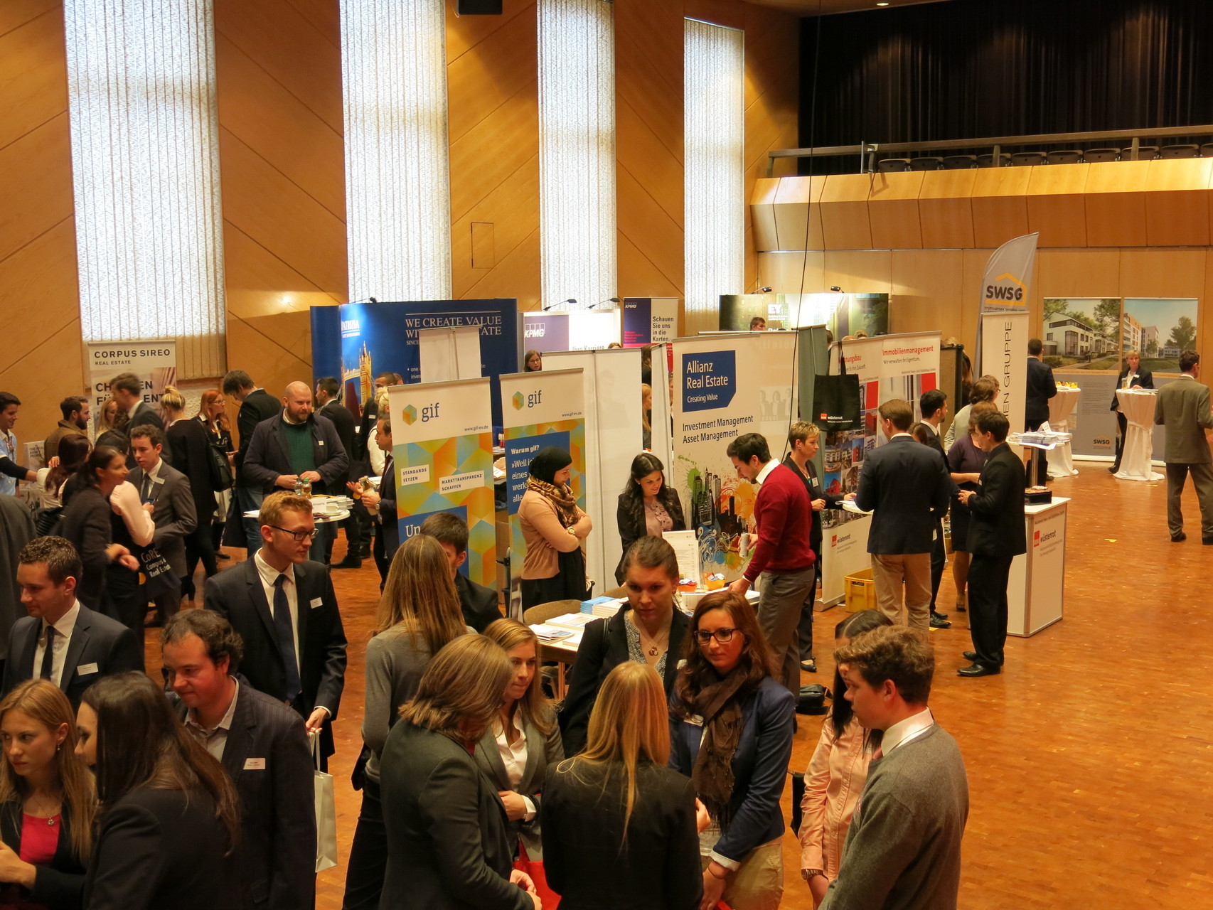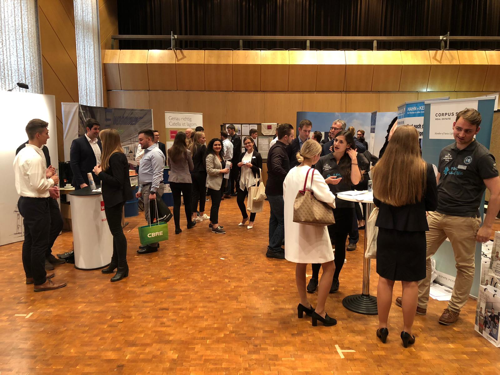 Die Jobmessen des Campus of Real Estate bringen die Immobilienwirtschaft in Kontakt mit den ca. 500 Studierenden der Studiengänge Immobilienwirtschaft und Immobilienmanagement. Zweimal pro Jahr können Unternehmern und Verbände sich hier präsentieren und potentielle Praktikanten, Werksstudenten oder Mitarbeiter kennenlernen. Studierenden bieten wir die Gelegenheit, sich über zukünftige Arbeitgeber zu informieren, Bewerbungsgespräche zu führen und an einem interessanten Rahmenprogramm teilzunehmen.