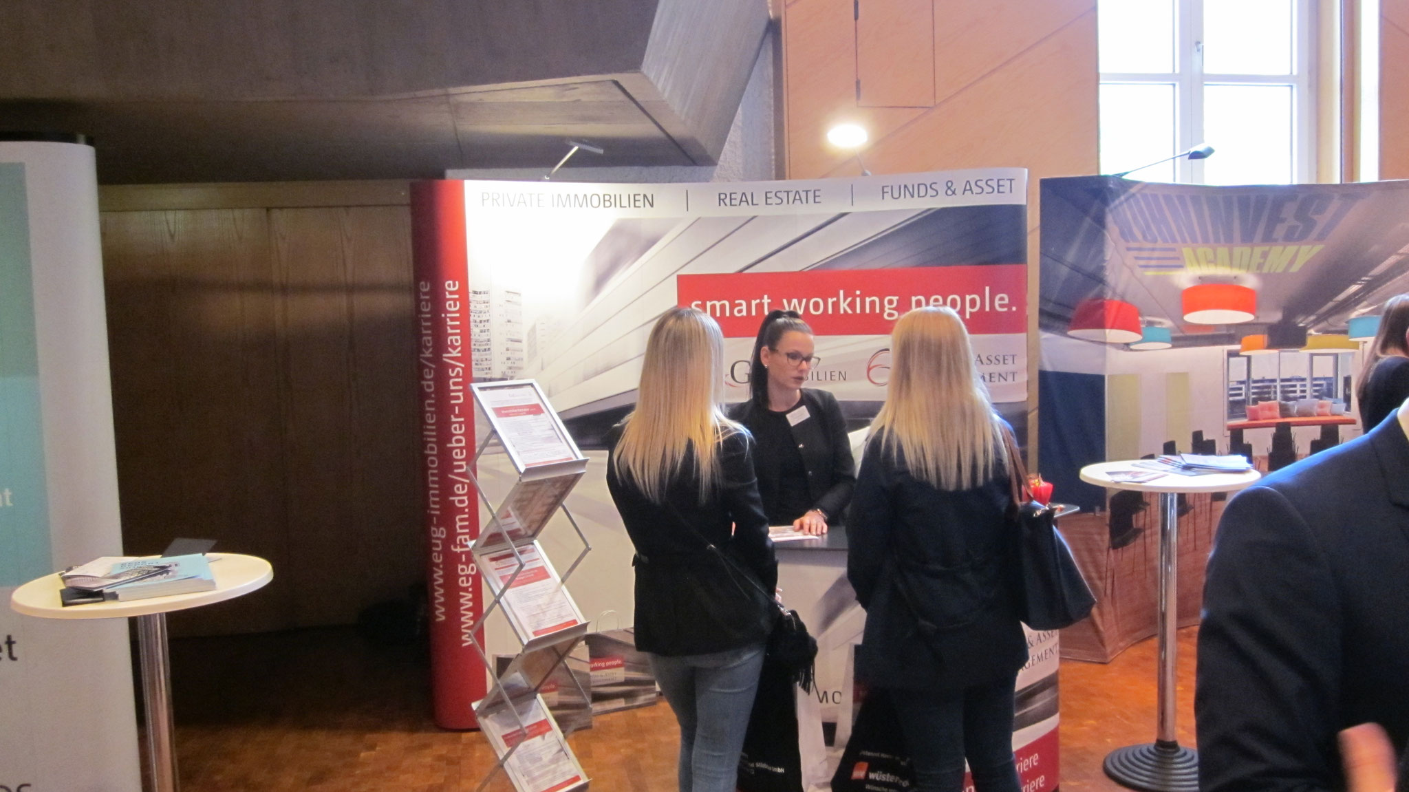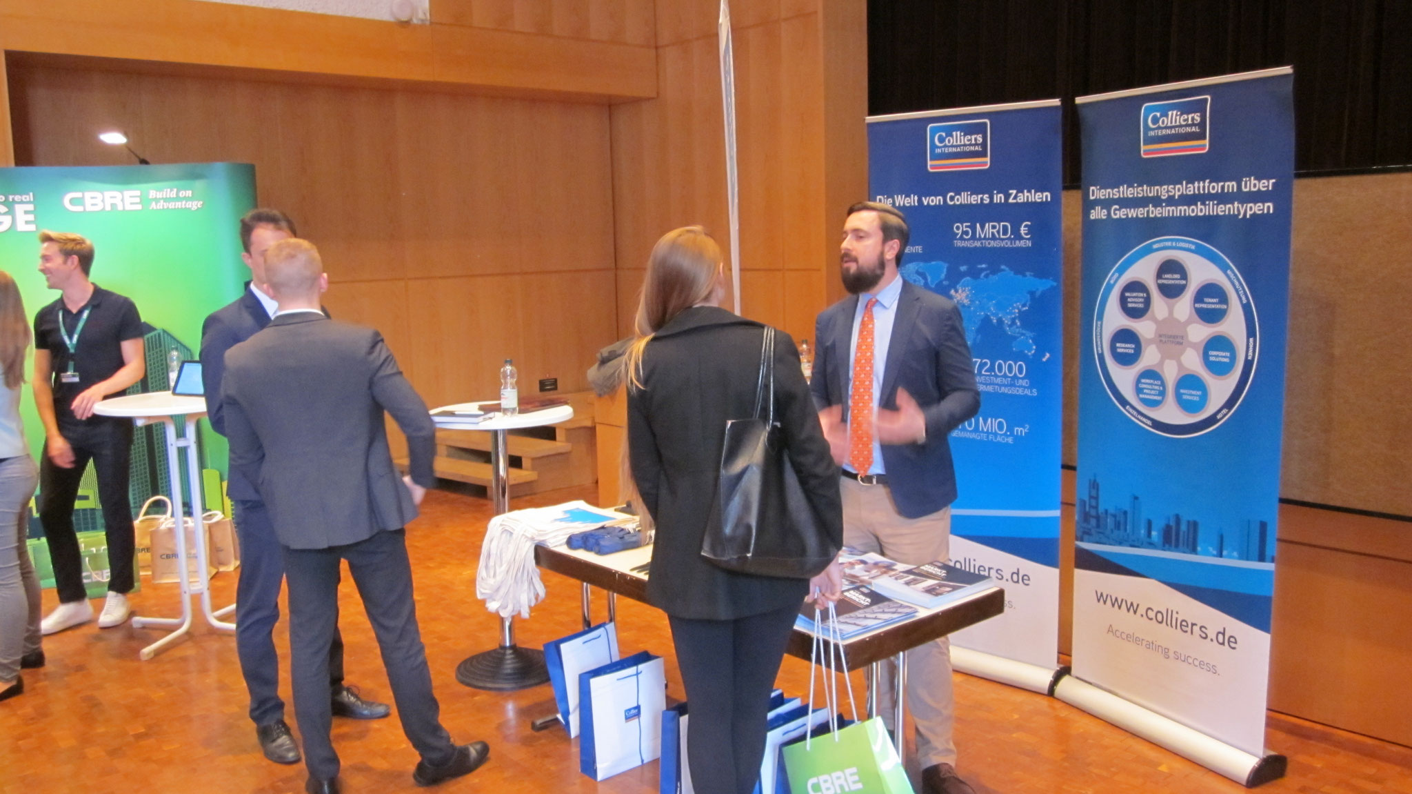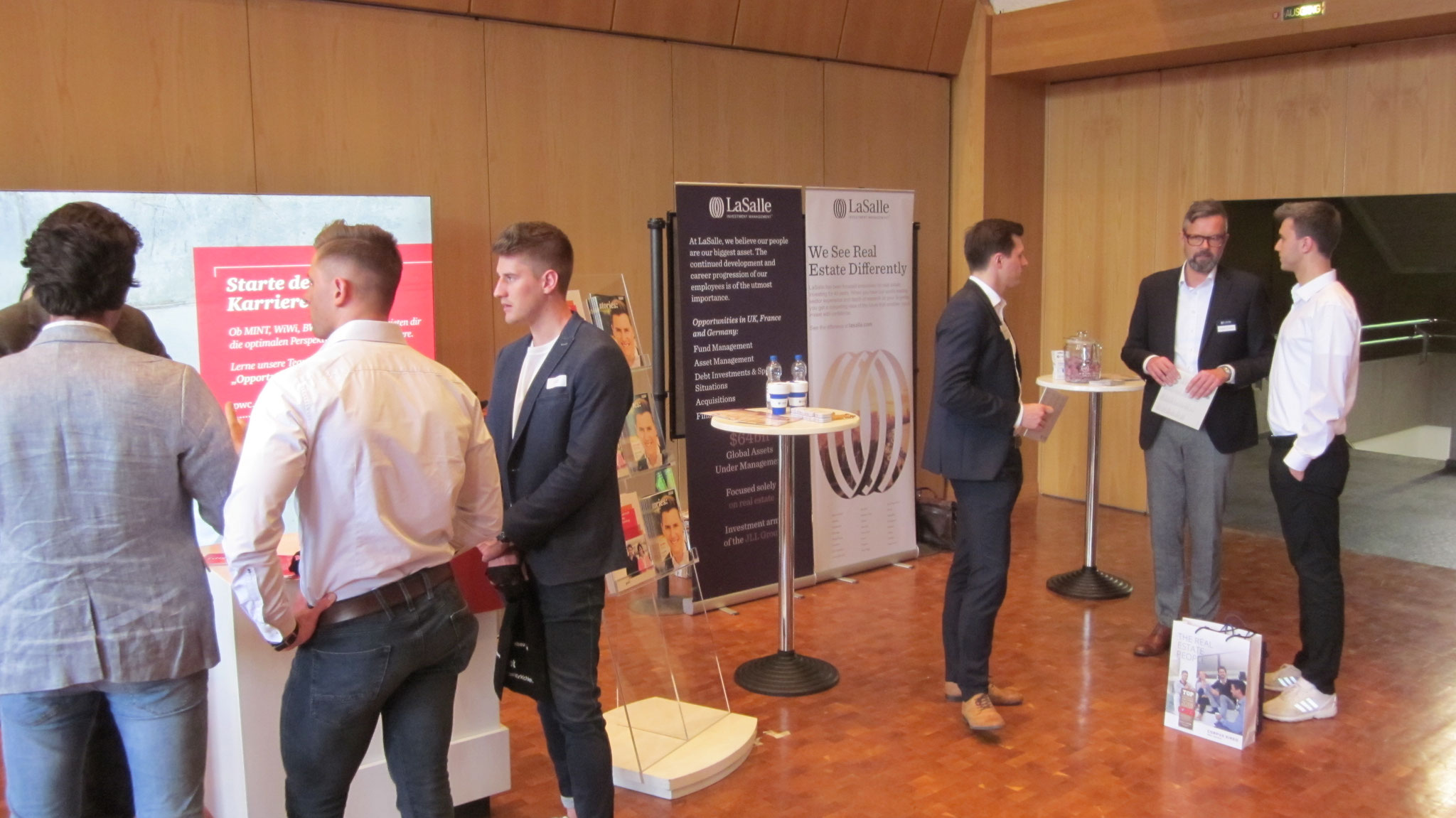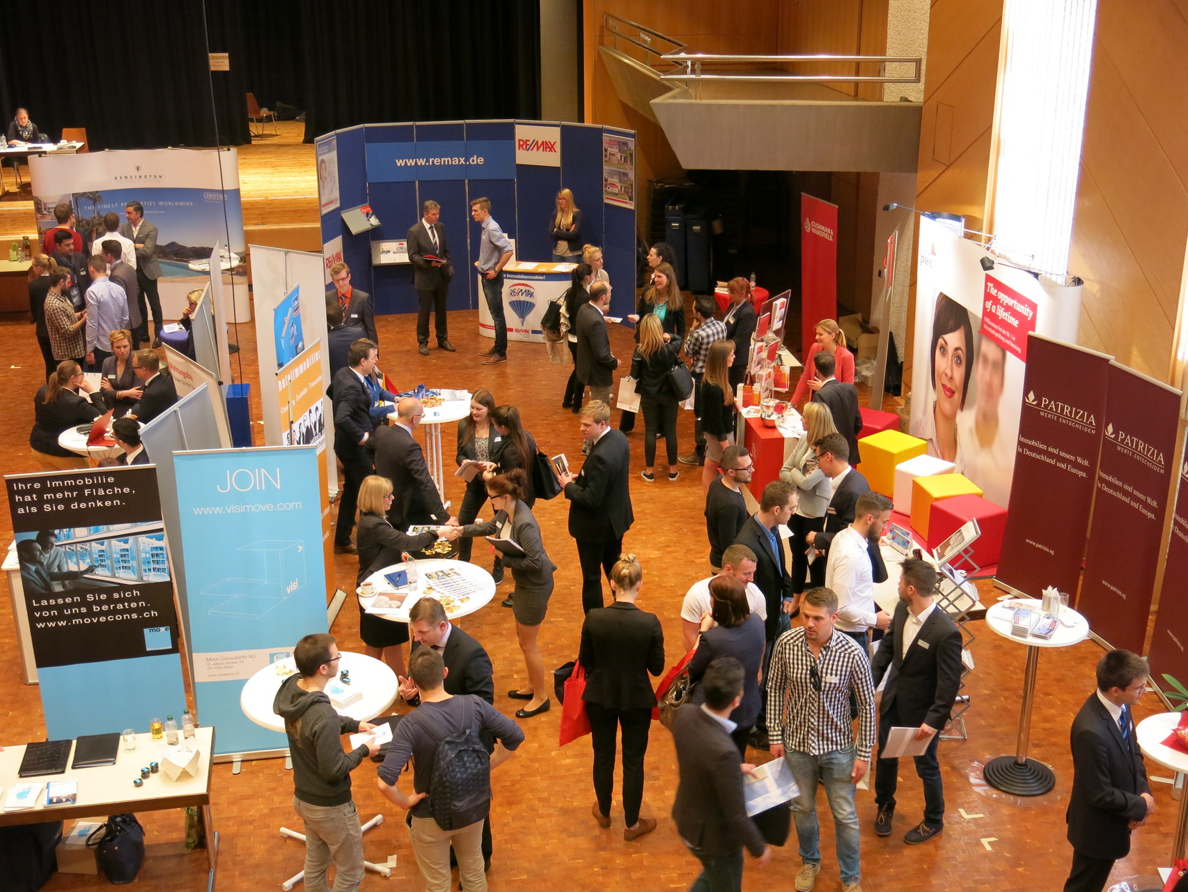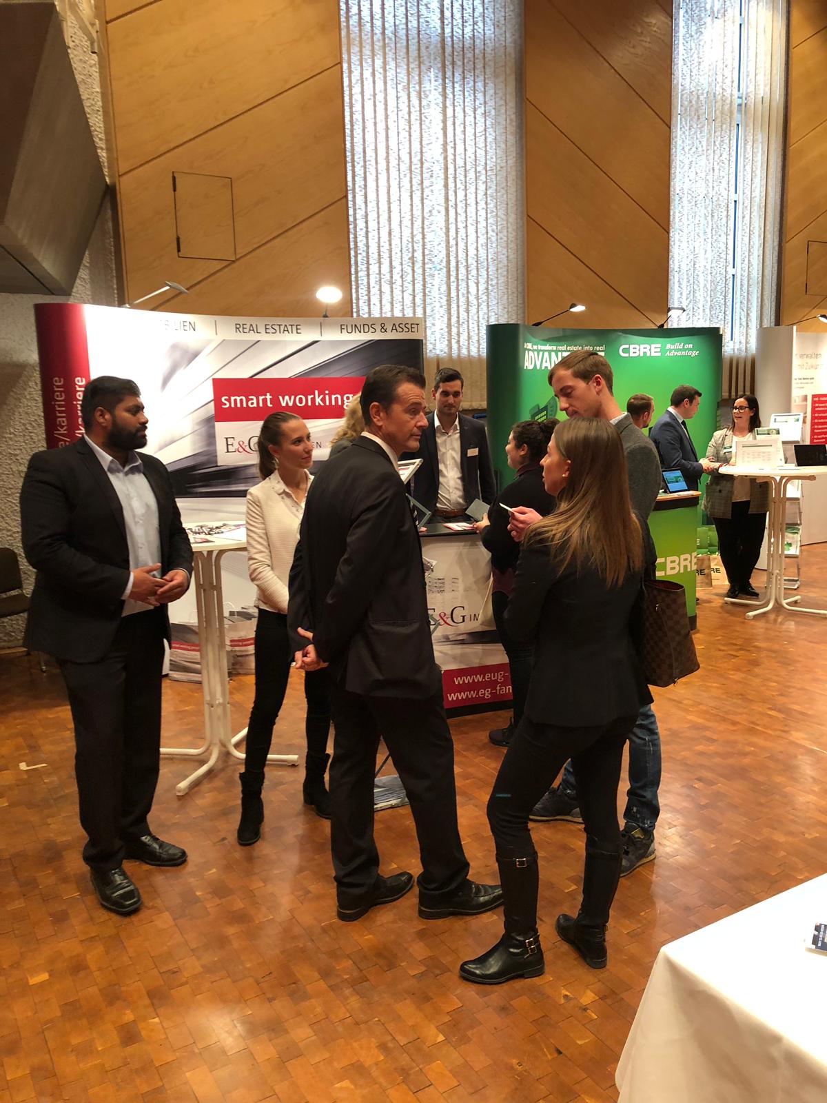 Die Jobmessen des Campus of Real Estate bringen die Immobilienwirtschaft in Kontakt mit den ca. 500 Studierenden der Studiengänge Immobilienwirtschaft und Immobilienmanagement. Zweimal pro Jahr können Unternehmern und Verbände sich hier präsentieren und potentielle Praktikanten, Werksstudenten oder Mitarbeiter kennenlernen. Studierenden bieten wir die Gelegenheit, sich über zukünftige Arbeitgeber zu informieren, Bewerbungsgespräche zu führen und an einem interessanten Rahmenprogramm teilzunehmen.