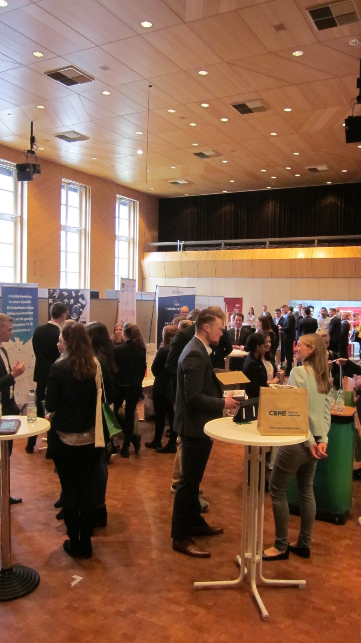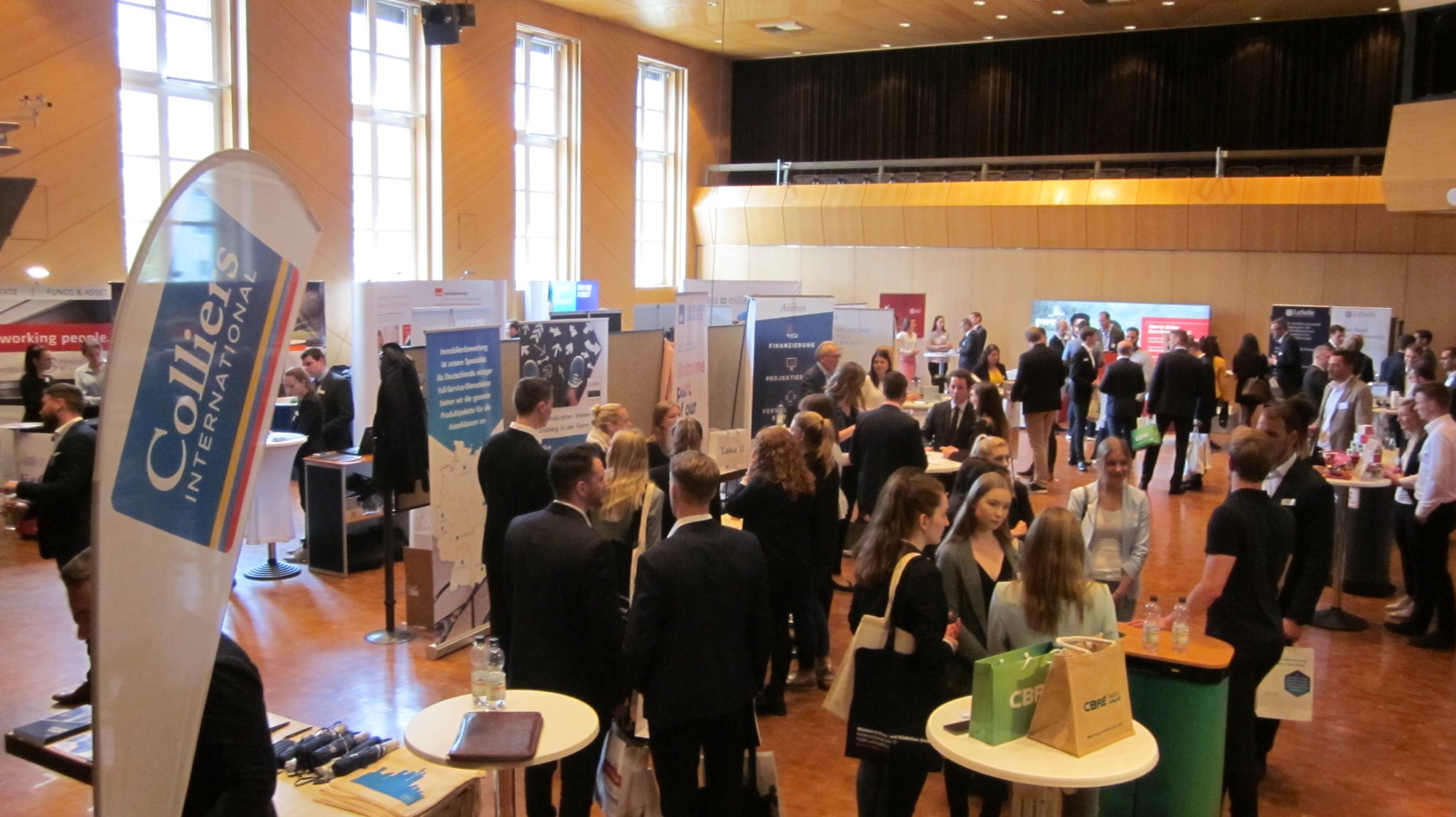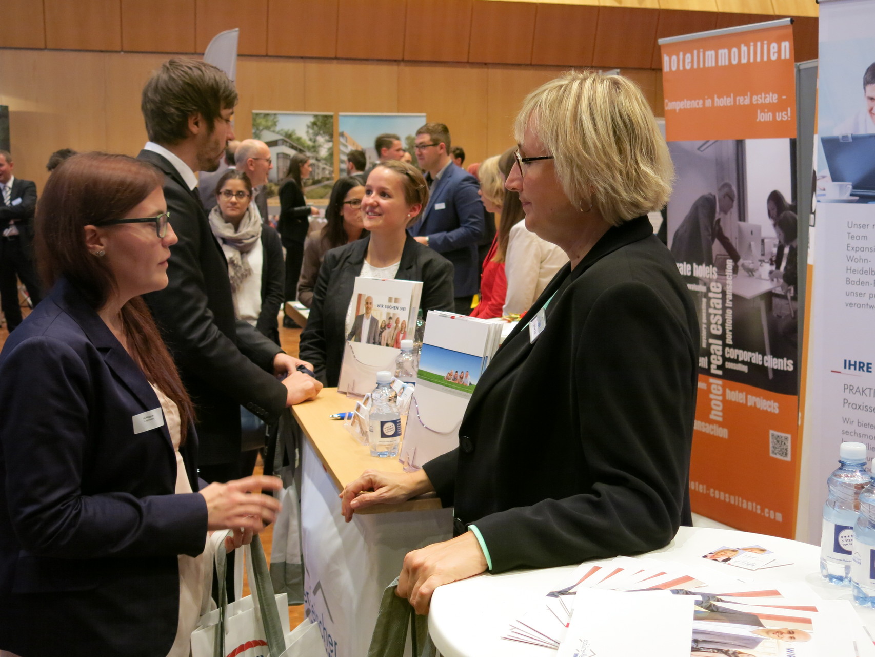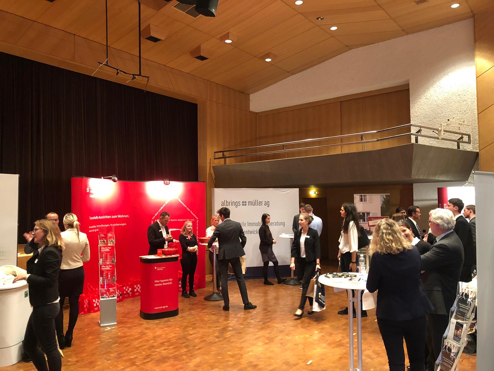 Die Jobmessen des Campus of Real Estate bringen die Immobilienwirtschaft in Kontakt mit den ca. 500 Studierenden der Studiengänge Immobilienwirtschaft und Immobilienmanagement. Zweimal pro Jahr können Unternehmern und Verbände sich hier präsentieren und potentielle Praktikanten, Werksstudenten oder Mitarbeiter kennenlernen. Studierenden bieten wir die Gelegenheit, sich über zukünftige Arbeitgeber zu informieren, Bewerbungsgespräche zu führen und an einem interessanten Rahmenprogramm teilzunehmen.
