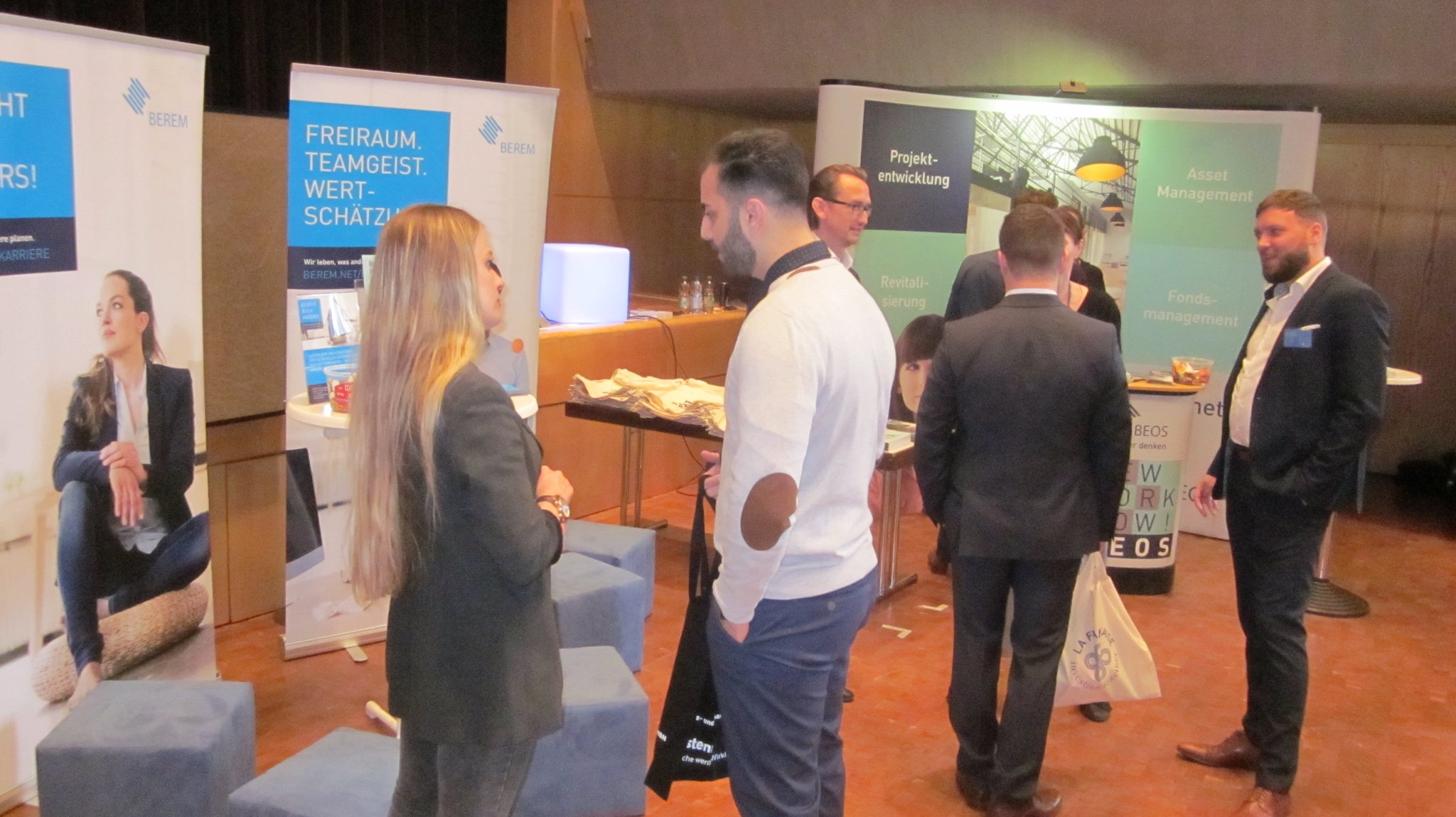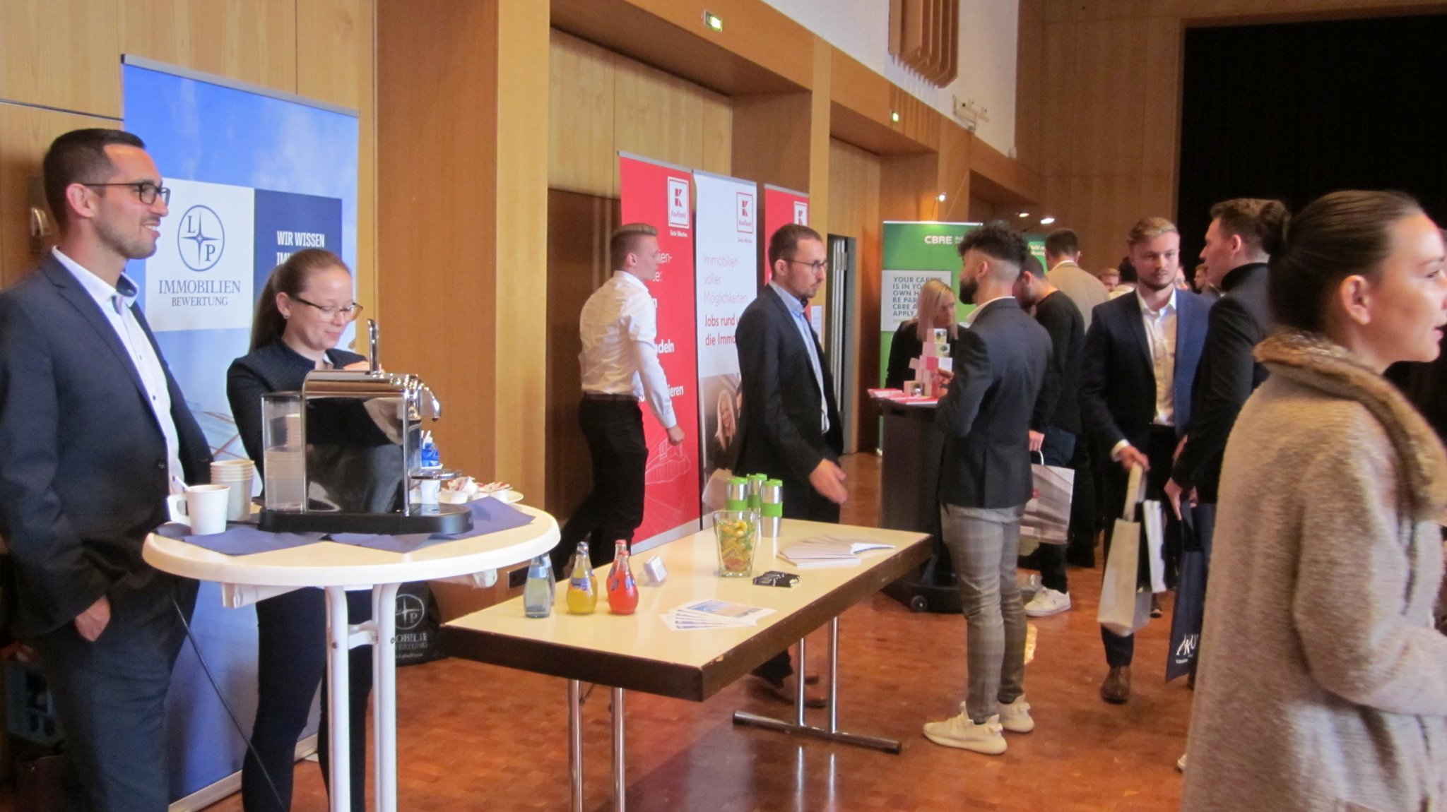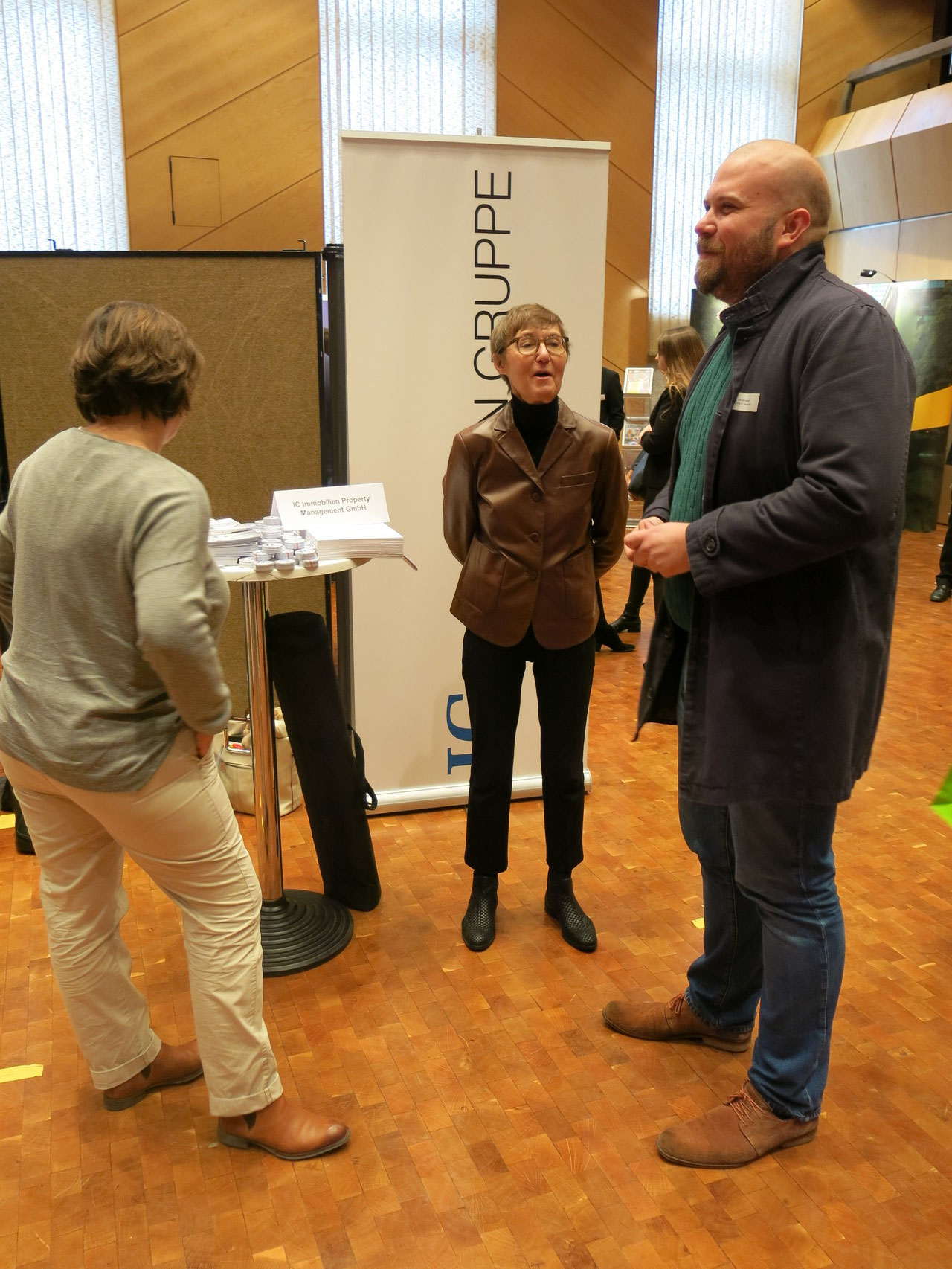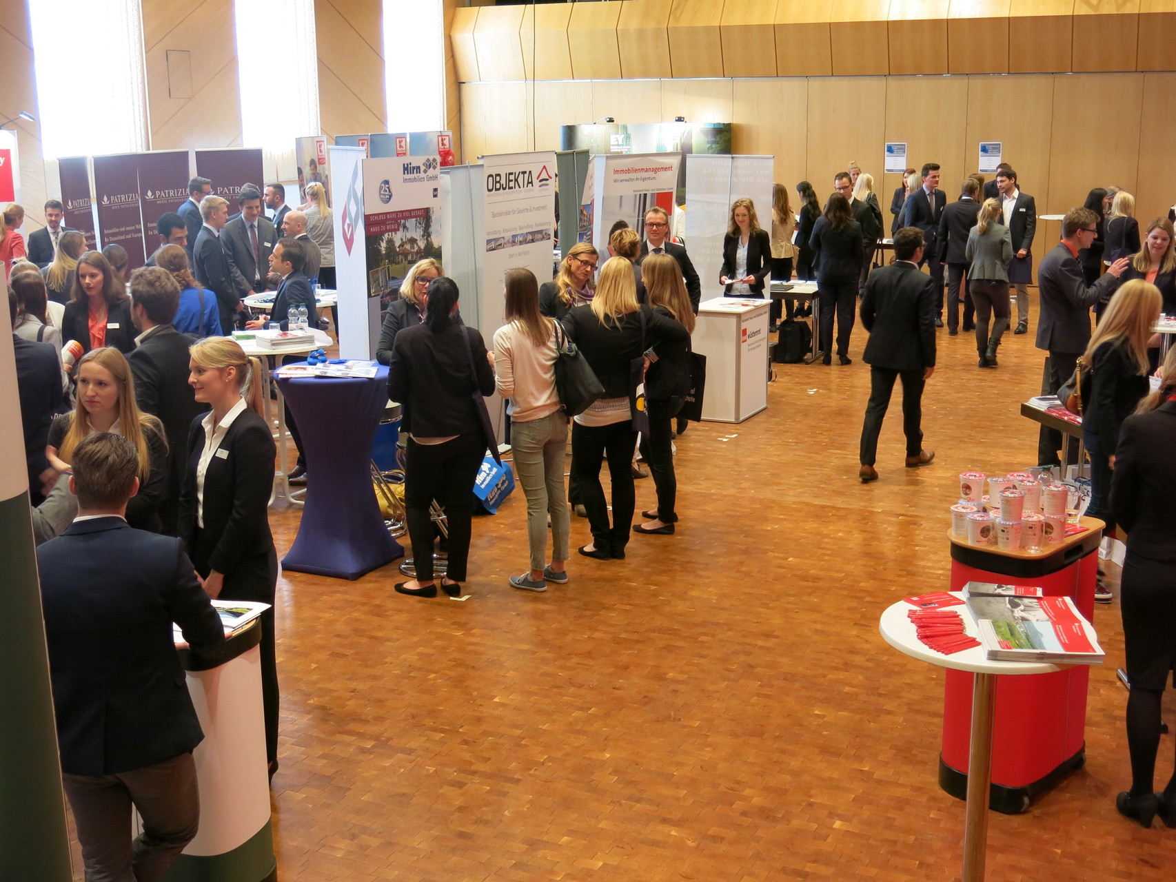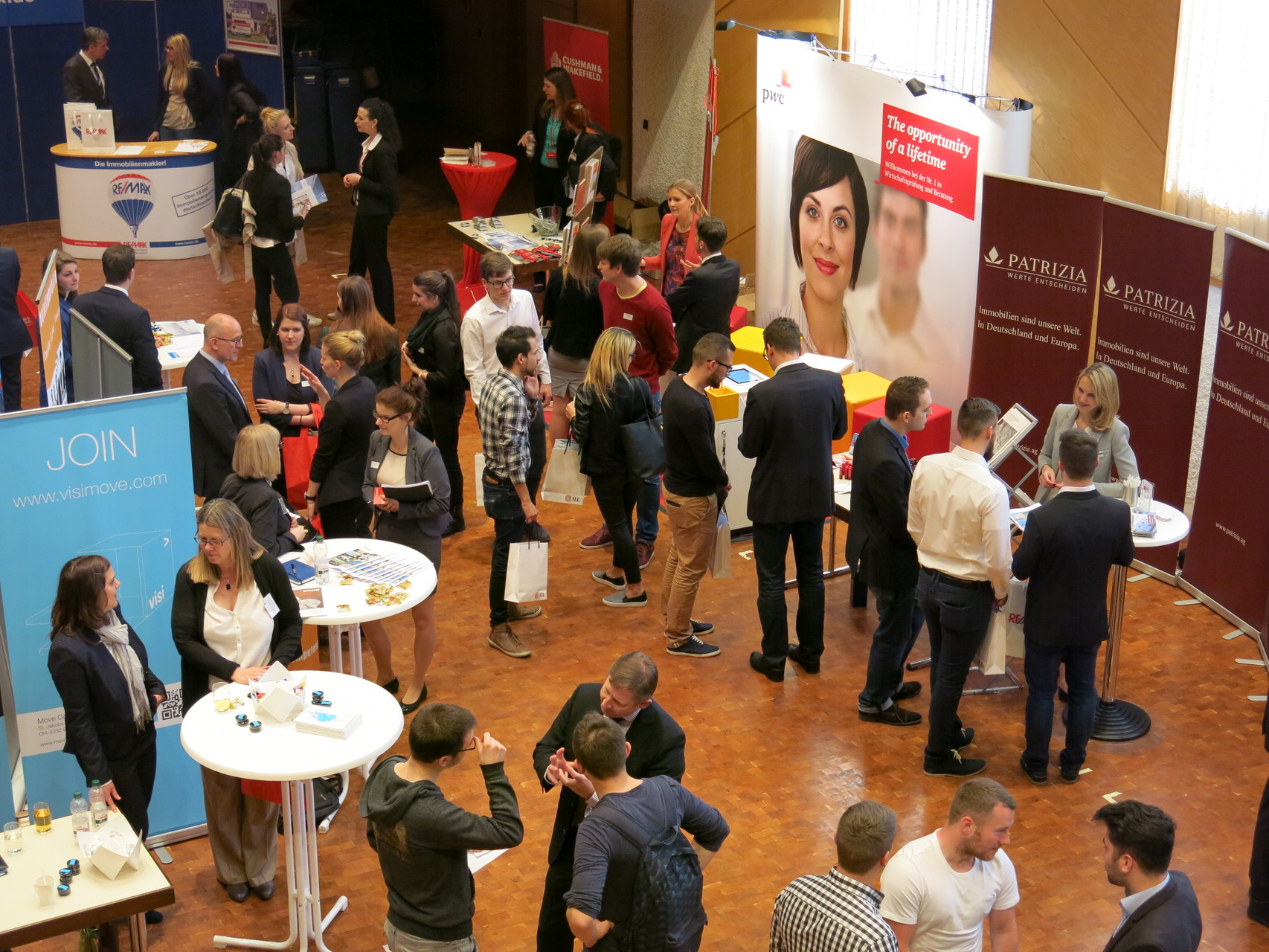 Die Jobmessen des Campus of Real Estate bringen die Immobilienwirtschaft in Kontakt mit den ca. 500 Studierenden der Studiengänge Immobilienwirtschaft und Immobilienmanagement. Zweimal pro Jahr können Unternehmern und Verbände sich hier präsentieren und potentielle Praktikanten, Werksstudenten oder Mitarbeiter kennenlernen. Studierenden bieten wir die Gelegenheit, sich über zukünftige Arbeitgeber zu informieren, Bewerbungsgespräche zu führen und an einem interessanten Rahmenprogramm teilzunehmen.
